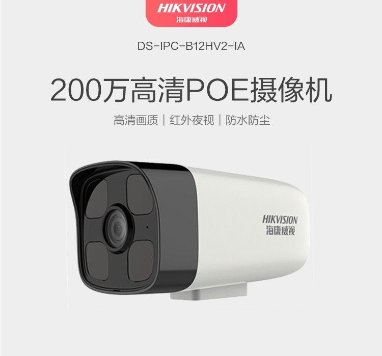 海康威視(HIKVISION)DS-IPC-B12HV2-IA 監控攝像機 POE供電/ 4MM焦距